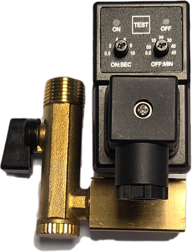 Elektrisk drænventil. Manglende rutinemæssig aftapning af kondensvand fra trykluftsystemer, kan have alvorlige produktionsmæssige konsekvenser.Trykluftsystemer kan blive alvorligt forurenet - blot pga manglende aftapning af kondensvand. Drænventilen eliminerer den menneskelige fejlmulighed ved automatisk at sikre udluftning af kondensvand til tiden - hver gang. Drænventilen består af en timer og en magnetventil, og den er let at installere. Den er velegnet til alle trykluftsystemer - f.eks. efterkølere, køletørrere, filtre, trykluftbeholdere og rørsystemer - uanset størrelse og kapacitet. Indstil blot drænintervallet og åbningstiden så den passer til den pågældende opgave.